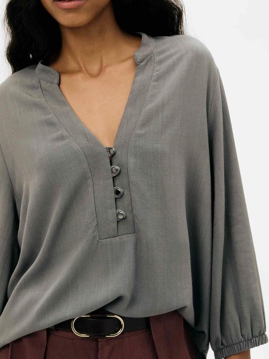 Blusa básica feminina manga 7/8 bufante, desenvolvida em tecido plano de viscose flamê, que se destaca pela sua suavidade e maciez. Versátil e charmosa, essa peça básica oferece um estilo sofisticado e moderno para diversas ocasiões, destacando-se pelo detalhe bufante nas mangas.