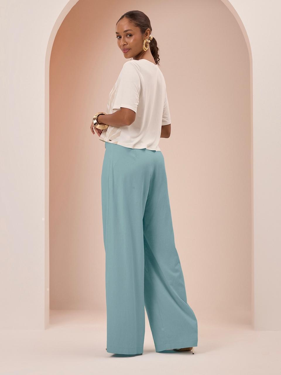-Modelagem pantalona ampla ao corpo